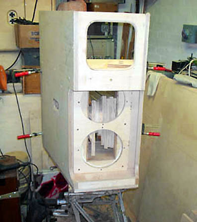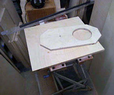 Above is Bob's homemade router jig for cutting holes in baffles, nice idea |